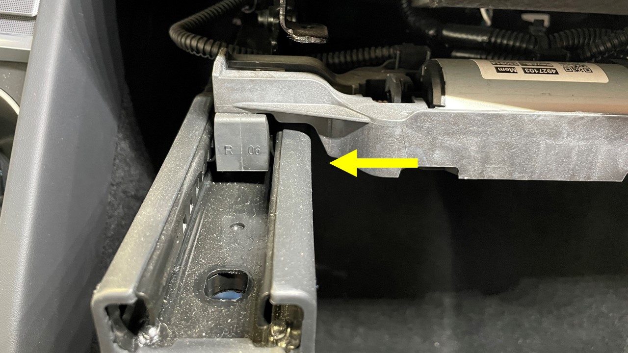 注撬开滑轨电机桥架锁片,将外侧座椅滑轨滑离,即可松开。