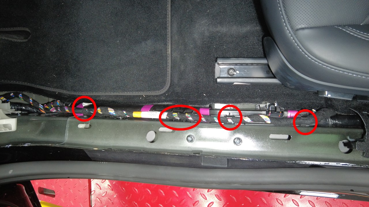 - 安装用于固定左前座椅线束的夹子(5 个)。