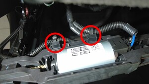 - 断开左侧座椅滑轨电机连接器上的电气线束。