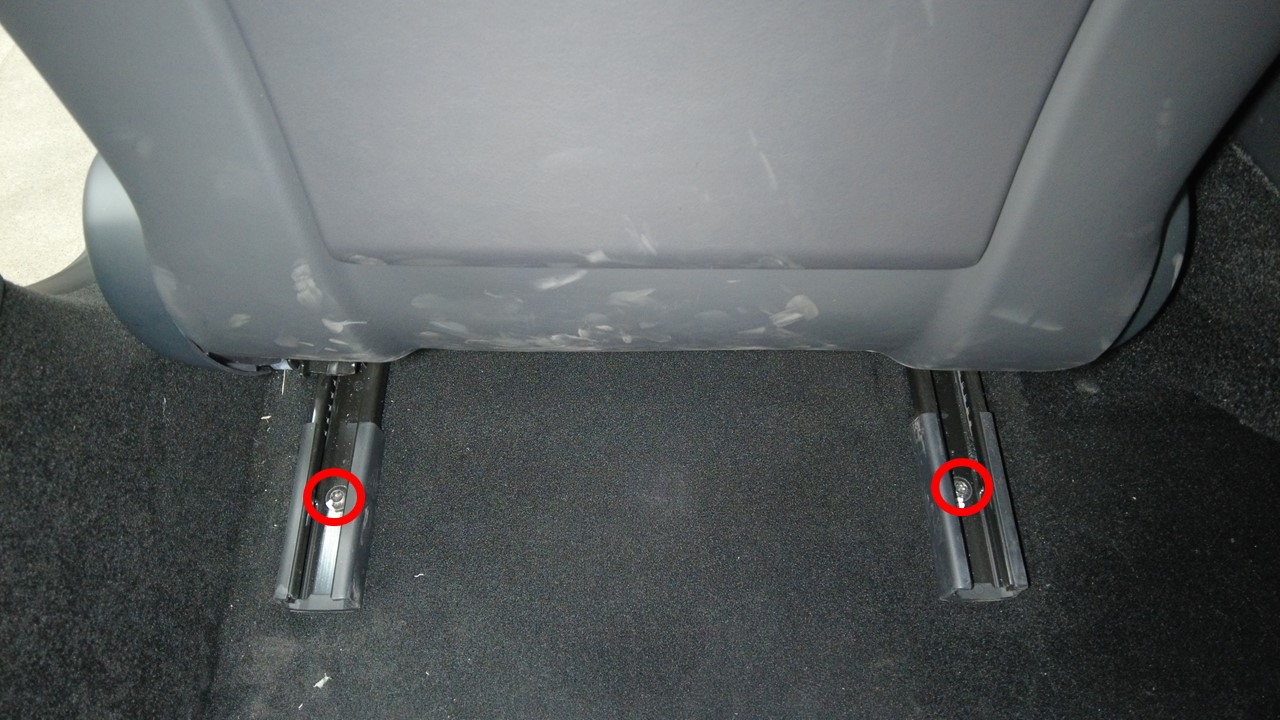 向前移动左前座椅,然后拆下并弃用将驾驶位座椅固定到车辆的后部螺栓(2 个)。