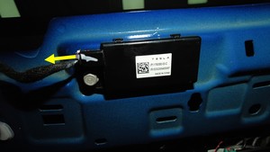 将低能耗蓝牙 (BLE) 模块放置到位,紧固卡子,然后紧固将低能耗蓝牙 (BLE) 模块固定到车辆的螺栓。