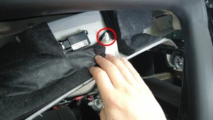 拆卸将低能耗蓝牙 (BLE) 模块固定到车辆的螺栓,然后松开卡子,取下低能耗蓝牙 (BLE) 模块。