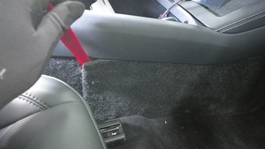 固定卡子前,请先对齐中控台右侧面板地毯前部锁片。
