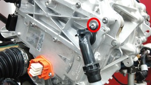 安装新的螺栓,将 90 度液力联轴节固定到前驱动变流器总成。