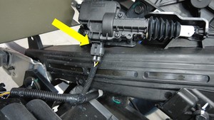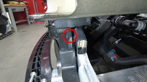 - 从主动进气格栅上拆下环境温度传感器盖,然后断开传感器电气连接器。