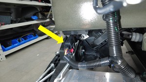- 将电气线束连接器与前备箱盖闩锁执行机构相连。