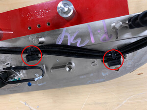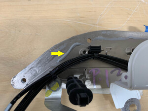 注电池组触点开关线束使用 3 个较厚的边缘夹。