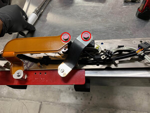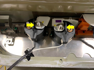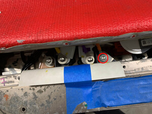 - 拆下并弃用此前预装的将速接板固定到高压电池仓托盘的旧 M5 螺钉(2 个)。