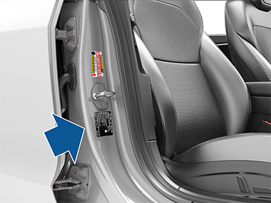 - 印制在门柱的产品铭牌上,打开副驾位车门时可以看到。