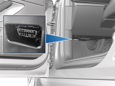 - 车辆识别号码也可以使用车载诊断系统 II (OBD-II) 代码读取器或扫描仪读取。相关说明,请参考 OBD-II 代码读取器或扫描仪生产商提供的文件资料。OBD-II 诊断接口位于车辆仪表板驾驶侧下方。