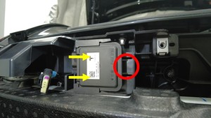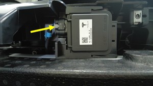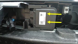 - 松开锁片,然后向右滑动 HomeLink 发射器模块,以便将其从车辆上拆下。