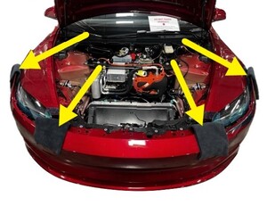 - 紧固将左前轮拱内衬固定到前饰板的卡子(5 个),然后将内衬移开,留出操作空间。