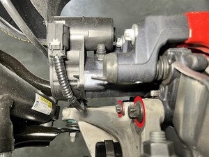 将左后制动钳安装到左后转向节上,然后安装新的螺栓,将卡钳固定到转向节上。