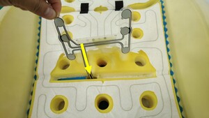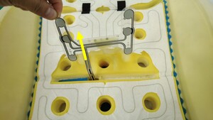- 揭下胶面保护条,将占用传感器安装到左前座垫上。