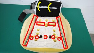 - 放下座垫外罩,然后紧固 Velcro 系带(4 个)和拱环(5 个)。