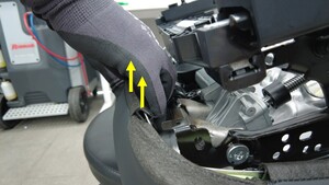 断开座垫加热器连接器,然后将连接器从座椅底部分离。