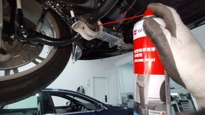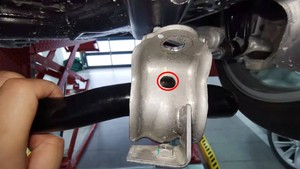 安装新的螺母(2 个),将左前平衡杆固定到副车架上,紧固螺母并用油性记号笔做下标记。