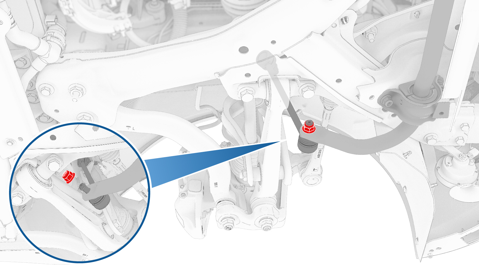 拆下并弃置将左前平衡杆固定到前副车架的螺母(2 个)。