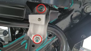 将左前平衡杆连杆放置到前平衡杆上,安装新的螺母,将连杆固定到平衡杆,紧固螺母,然后用油性记号笔做下标记。