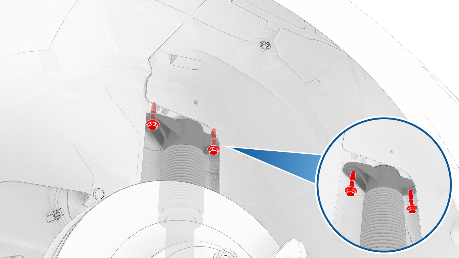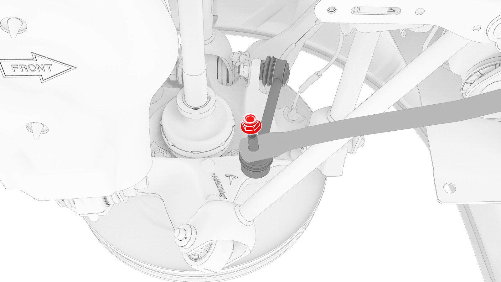 - 调整托臂支架和/或弹簧压缩机,使后部行驶高度扭矩工具的底梁靠在下尾连杆的底部边缘上(如图所示)。