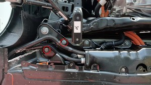 检查将左侧剪力板固定到车辆的大号螺栓,确认其扭矩,然后用油性记号笔标记螺栓。