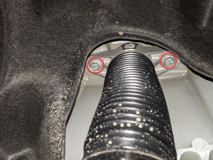 - 拆卸左右后悬架护罩。请参阅左后悬架盖 ((拆卸和更换))。