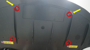打开螺栓盖(2 个),然后拆卸将后扩散器固定到车身的螺栓(4 个)。