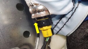 断开左前座椅靠背加热器连接器,将其从座椅底部拆下。