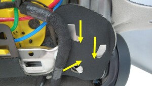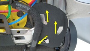 将座椅蒙皮拉离侧气囊,以便接触气囊电气连接器,然后断开座椅侧气囊连接器。