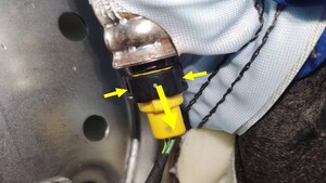 将前排靠背加热器连接器安装到座椅底部并进行连接。