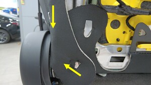 - 安装将头枕支柱导件固定到座椅靠背框架的卡销(4 个)。