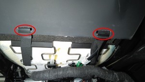 将系带夹(2 个)钩到驾驶位座椅靠背外壳总成上。