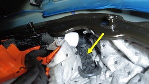 - 拆卸冷却液收集工具,然后从车辆下方取走冷却液压力测试仪。