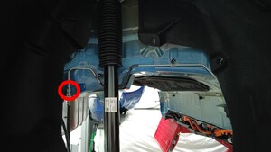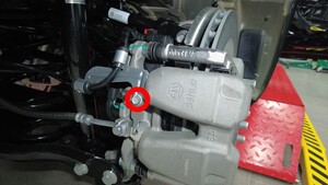 - 将机油排放容器放在左后制动软管下方。