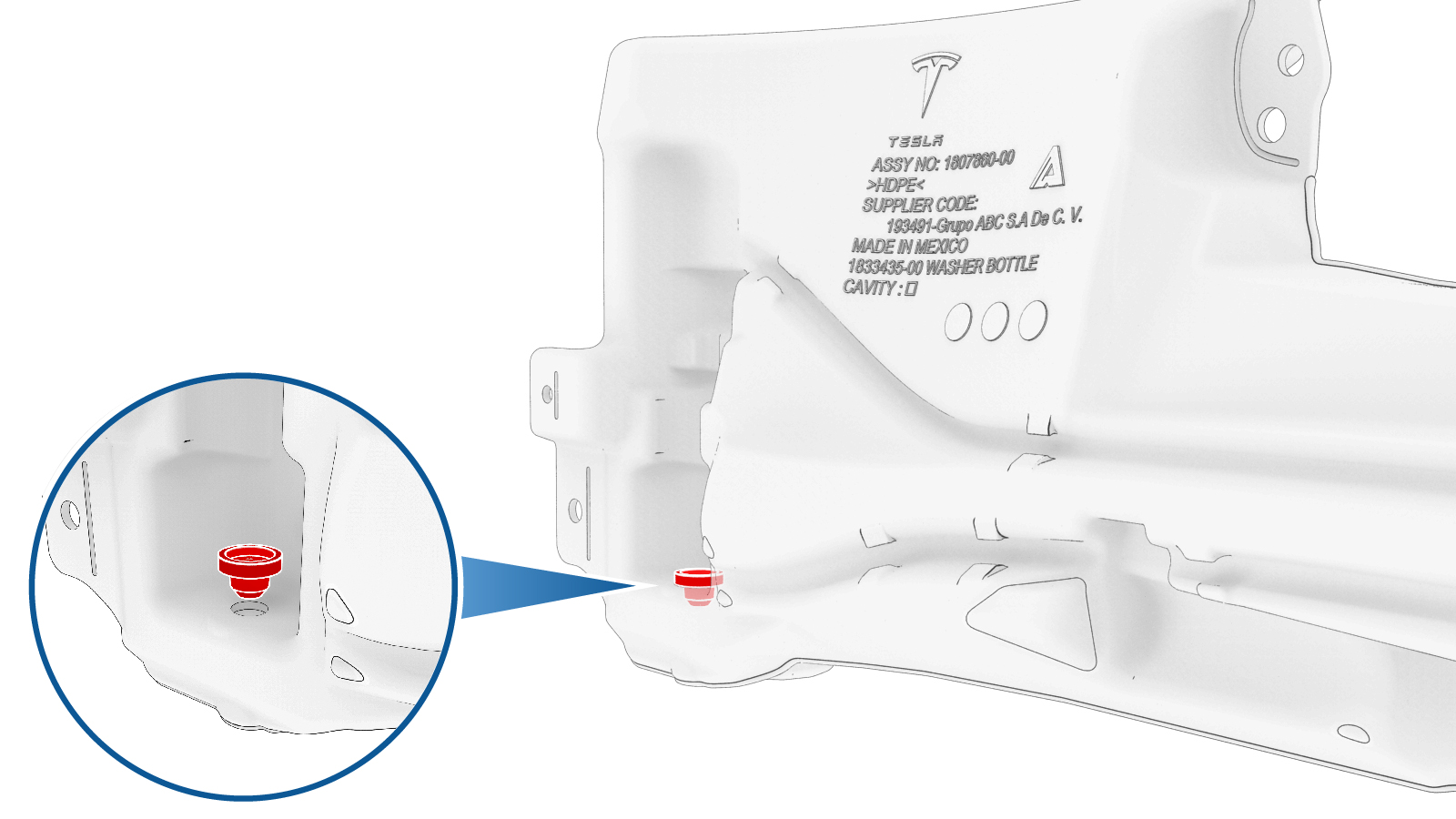 - 将清洗器泵索环从挡风玻璃清洗器储液罐上拆下。