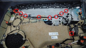 - 松开将左前车门线束固定到左前车门饰板的夹子(9 个),然后将线束从车辆上拆下。