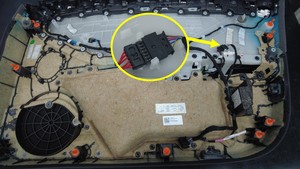 - 将左前车门扬声器连接器连接到左前车门饰板上。