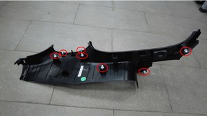 注将左侧 B 柱下饰板下端向上拉动,以松开卡子,然后将整个饰板拉向车辆内部,将饰板从车上拆下。