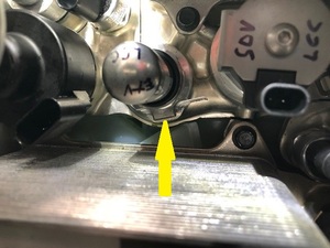 - 将超级歧管至压缩机空调管路放置在超级歧管上,然后手动拧紧将空调管路固定到超级歧管的螺栓。