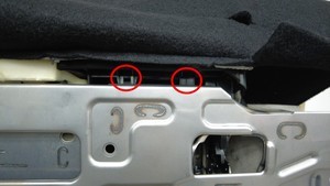 - 松开卡子,将第二排座椅靠背中央孔罩支架从座椅框架上拆下。