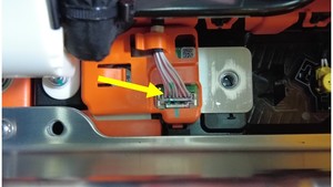 - 断开高压电池分流器线束连接器,然后从分流器绝缘体上松开线束。