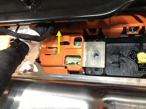 - 将高压电池分流器线束安装到分流器绝缘体夹上,以将其固定,然后连接高压电池分流器线束连接器。