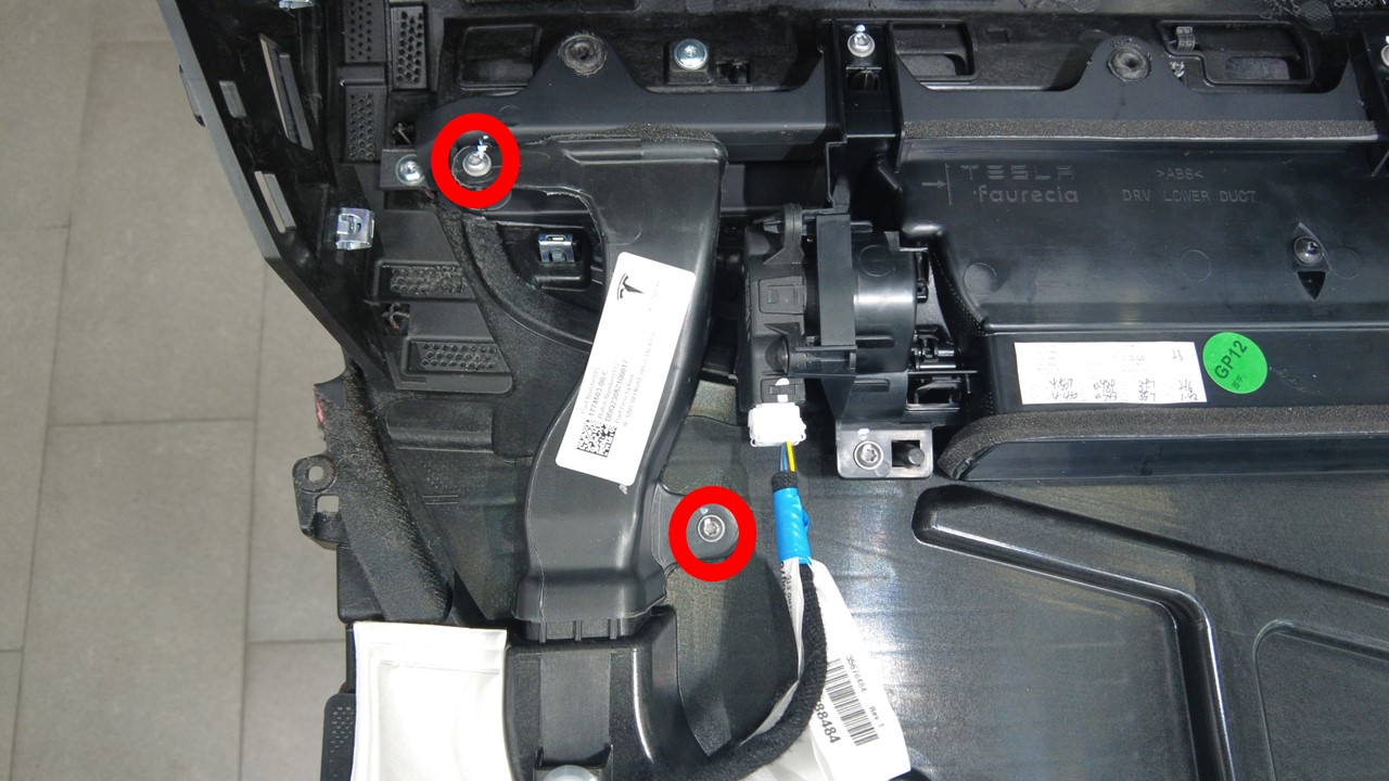 - 拆下将左侧气波管道固定到仪表板支架的螺钉(2 个),然后将气波管道从车辆上拆下。