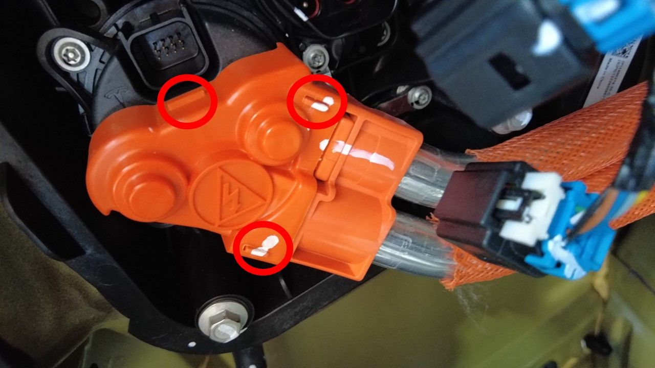 - 仅适用于 GB/T (中国)充电接口;将直流逻辑电气连接器从充电接口总成上断开。