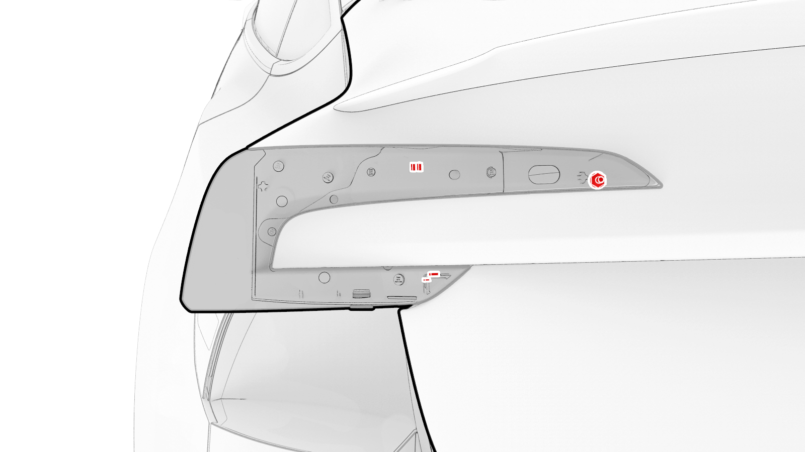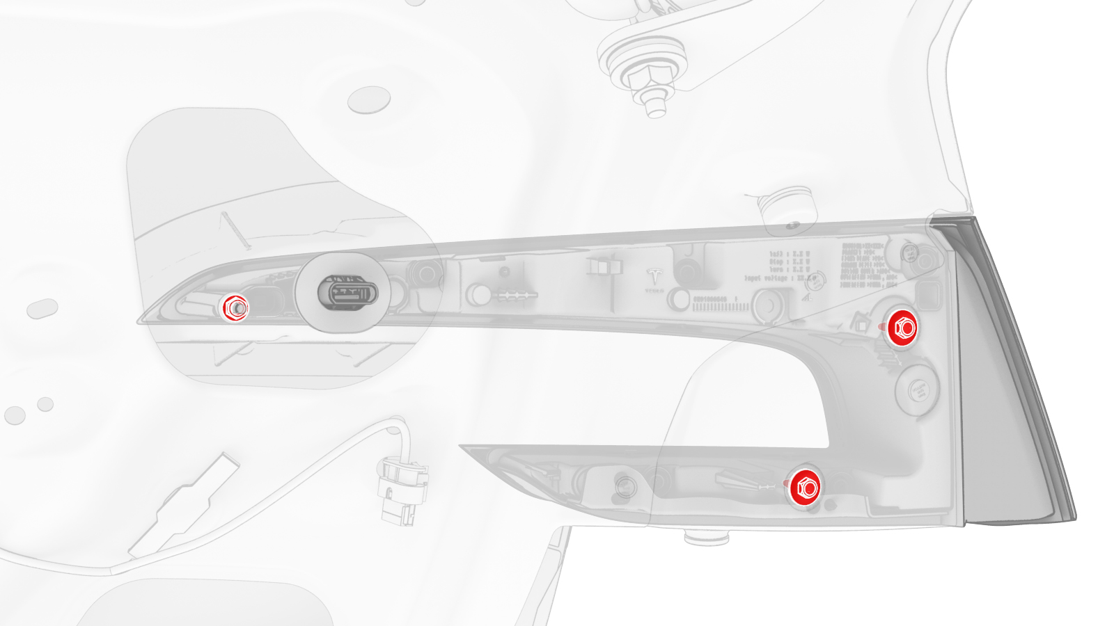 - 将左侧尾灯螺柱放入索环,然后将尾灯安装到车身上。