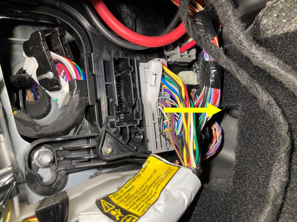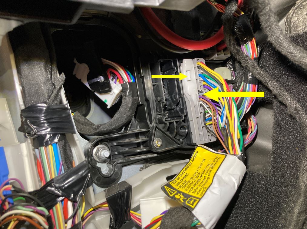 松开左前座椅连接器锁,然后将连接器从左侧车身控制器上拆下。
