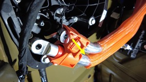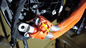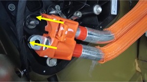 在从高压母排引线到充电接口螺柱的每个高压接头处执行 Hioki 电阻测试。