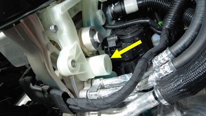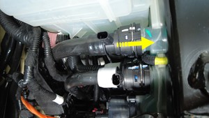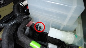 - 松开将电气线束固定到冷却液罐右侧的卡子。