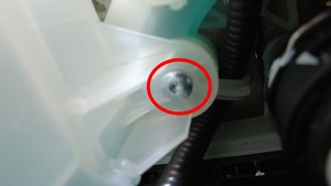 拆卸将冷却液罐前部固定到超级歧管的螺钉。