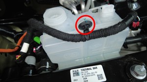 - 松开将电气线束固定到冷却液罐顶部的卡子。